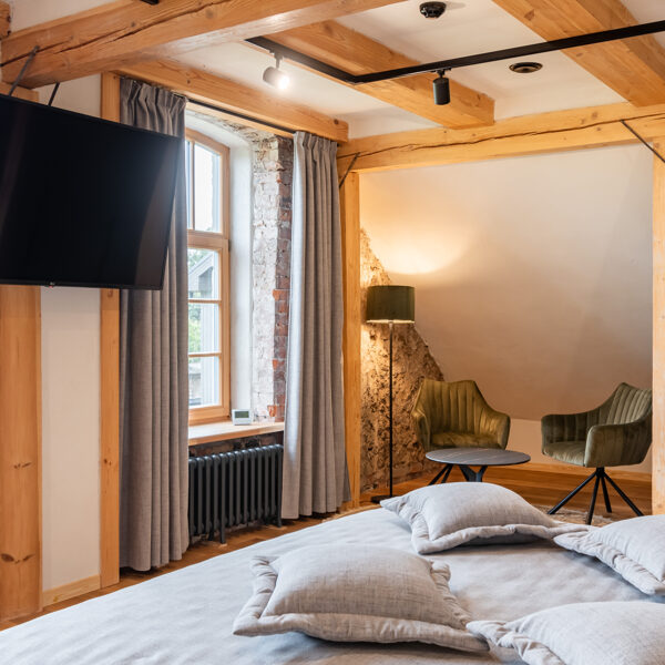 • Cenā ietilpst banketu zāle, kur svinības iespējamas līdz 80 personām un 16 guļvietas, kas atrodas ēkas 2.stāvā .